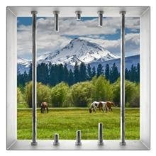 Naklejka na ścianę Okno 3D Konie na górskiej polanie 0024