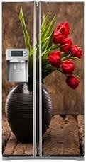 Mata na lodówkę side-by-side - Czerwone tulipany w wazonie 0509